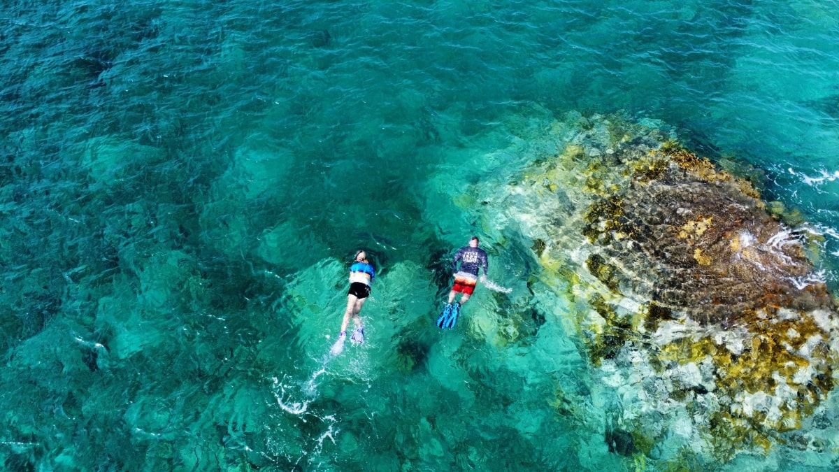 The cove is very protected from the elements and is always a nice calm spot to relax and soak up some vitamin D. We see lots of turtles and marine life here, and there are a few resident spotted eagle rays that swim by from time to time.